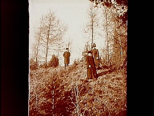 Tre personer i en skog.