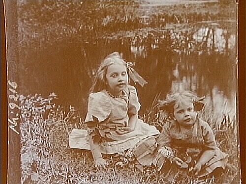 Två barn i gröngräset, Märta och Margit Lindskog.