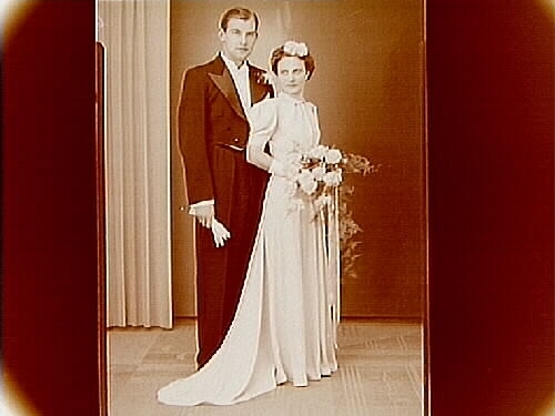 Ingrid Lindskog och Erik Westlund. Bröllopsfoto, brudpar.