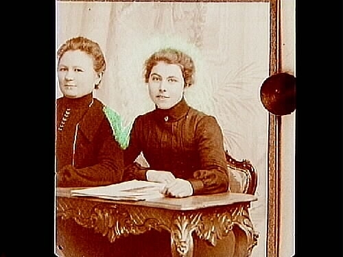 Två kvinnor, en av dem är fröken Hulda Johansson, fotograf Samuel Lindskogs fästmö.