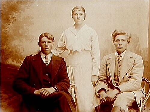 Familjegrupp, en kvinna och två män.