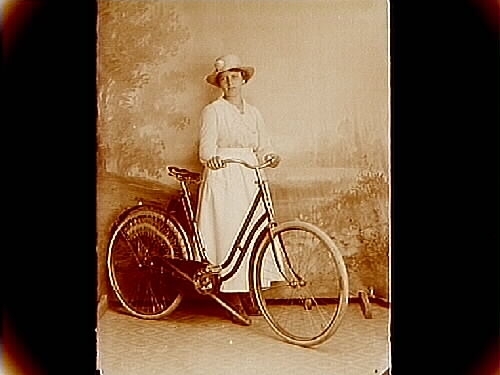 En kvinna med cykel.