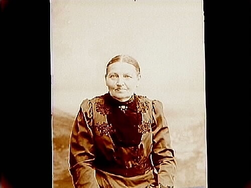 En äldre kvinna, bröstbild.