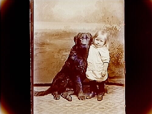 Titel: En liten flicka med en newfoundlandshund. Aron Larsson