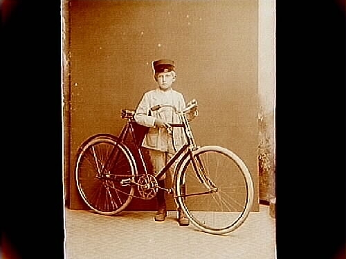 En pojke med cykel.