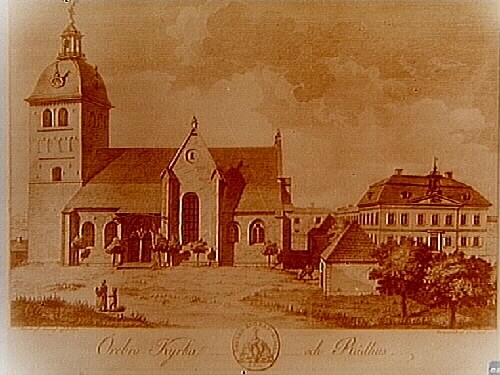 Gammal bild av Nikolaikyrkan och Rådhuset.