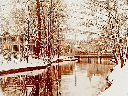 Motiv från Slottsparken. Bron över Svartån till Strömparterren.