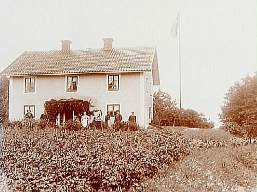 Tvåvånings bostadshus med veranda i snickarglädje.