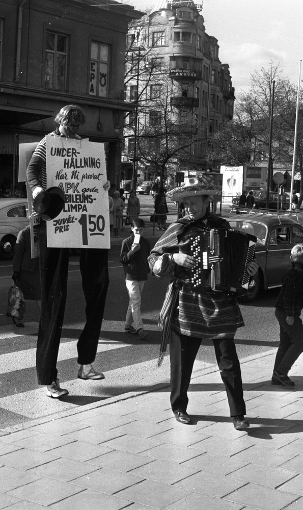 Clown och dragspelare på gatan under Örebro Jubileum 700.