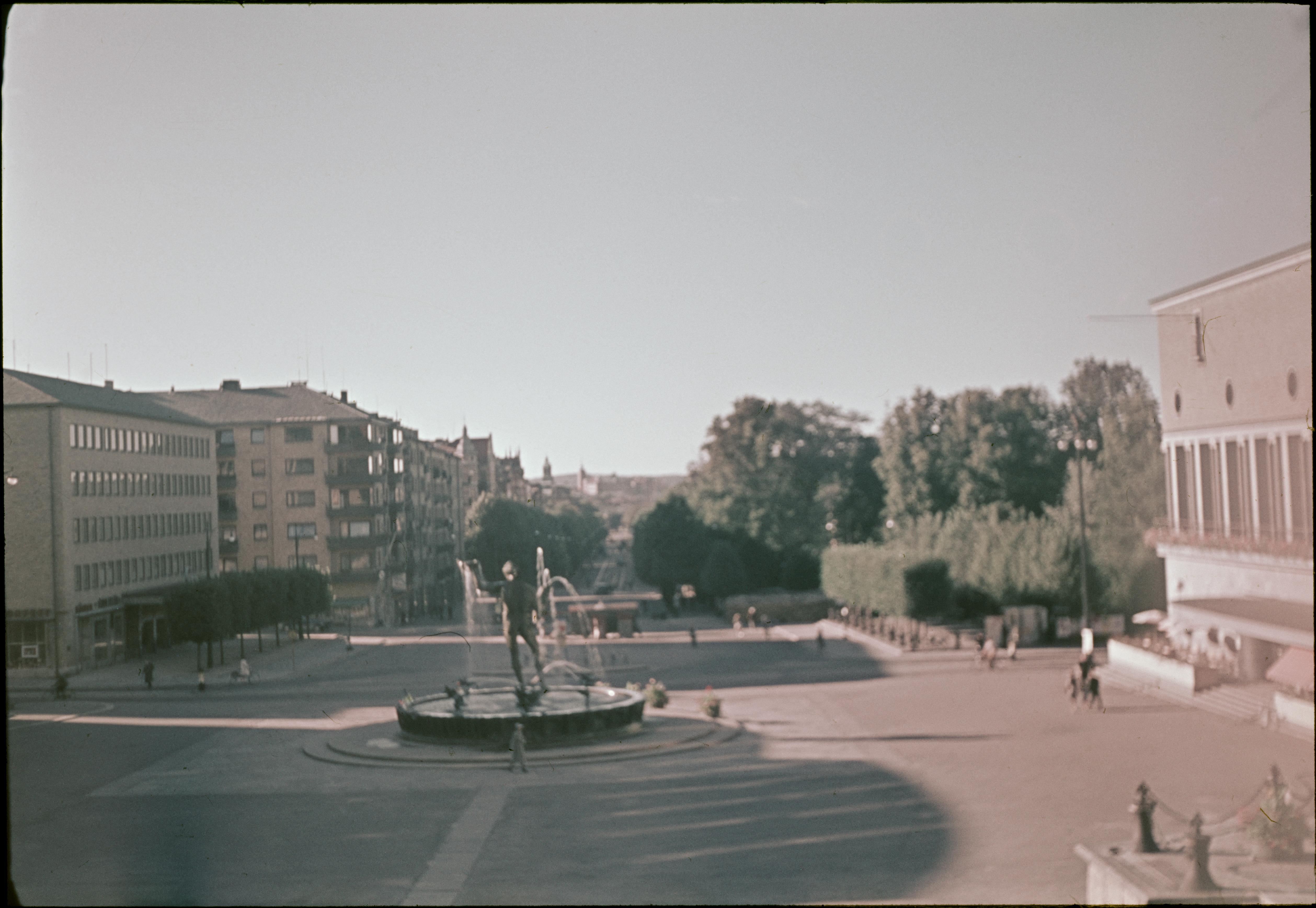 Götaplatsen med Carl Milles staty Poseidon. Till höger syns Stadsteatern.