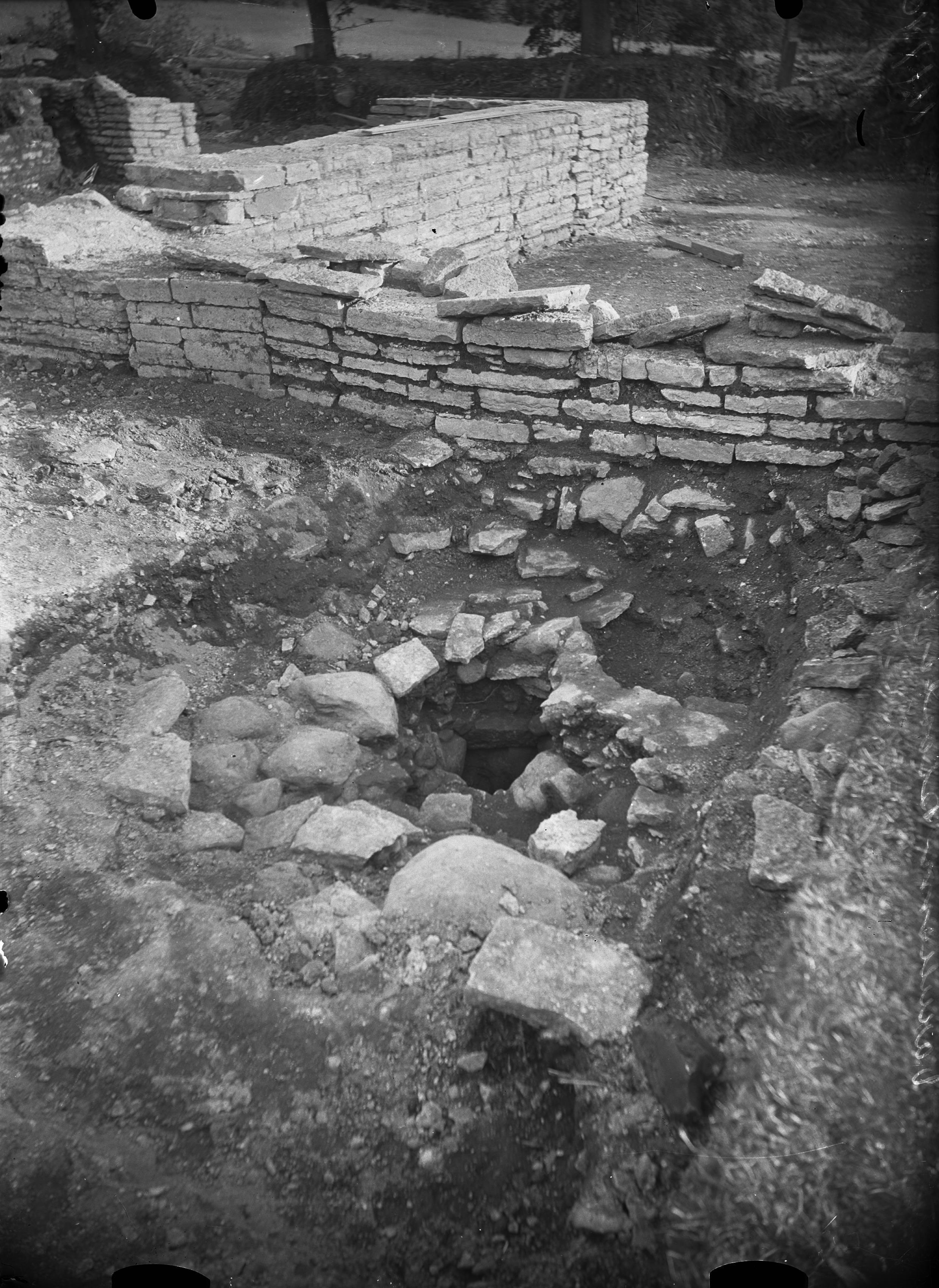Fr. Malmborgs undersökning. Brunnen i korsgångens sydvästra hörn. Från nordväst.