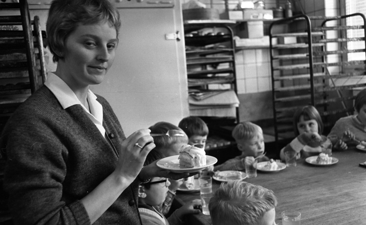 Barn och fröken äter tårta