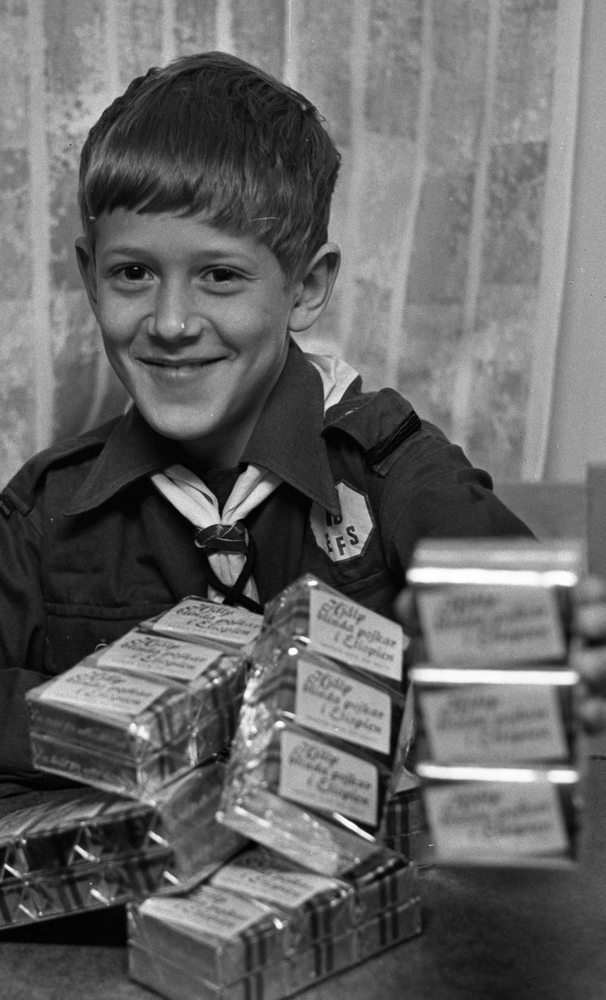 Pojke säljer tvål till förmån för blinda pojkar i Etiopien.