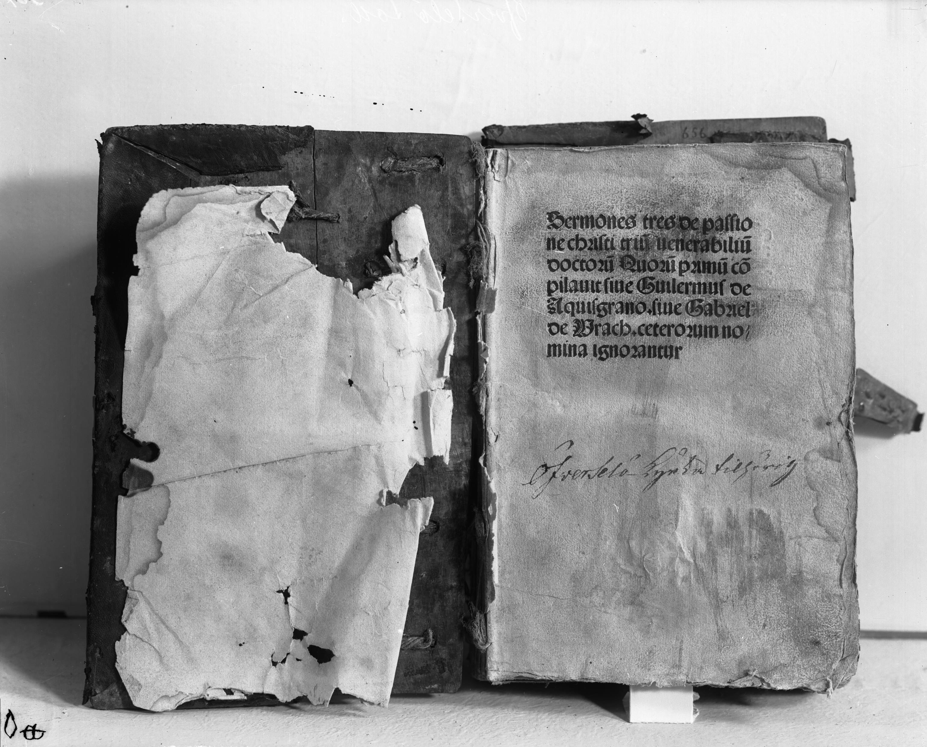 Inkunabel. Tryckt bok 1400-talets slut. Läderklätt trä med mässingsknäppe.