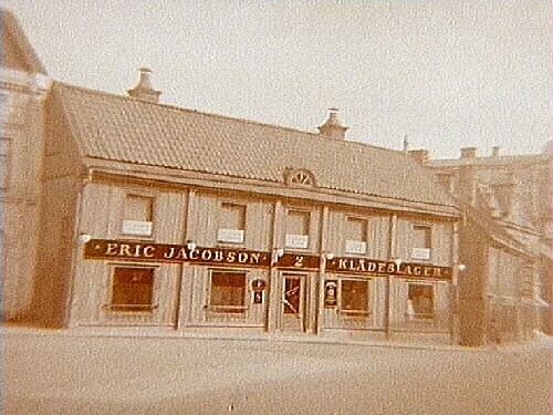 Tvåvånings byggnad, Erik Jacobson Klädeslager i gatuplanet.
