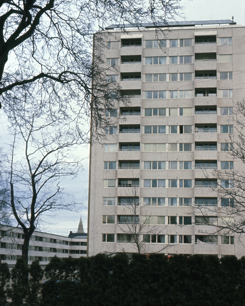 Höghus sett från Södra allén med adress Drottninggatan 54.