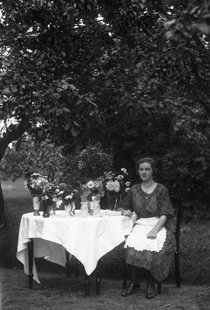 En kvinna vid ett bord. Högtid.