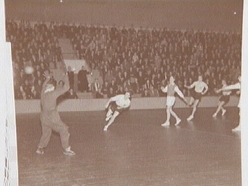 Handboll, Idrottshuset 1947. Arne Bergman i måltagen.