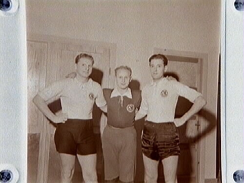 Handboll, Idrottshuset 1948. Roland Öst, Göte Edgren och Lasse Larsson.