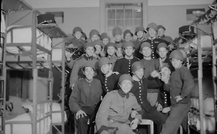 Militärer på luckan (sovsalen) vid I3 Örebro.