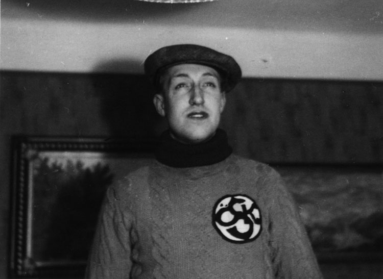 Gösta Klingberg iklädd ÖSK:s bandyklädsel hemma på Rudbecksg. 5, Ö-o