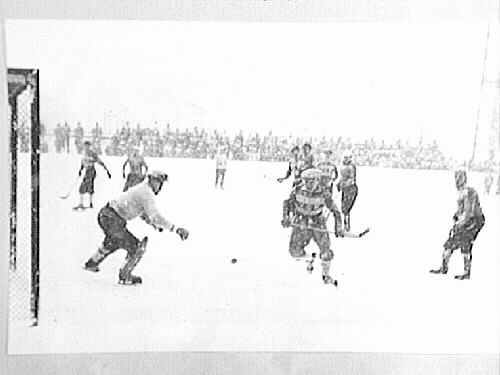 V.S.K-målvakten Henry Engström tar bollen.