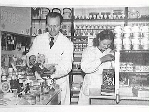 Curt Wiklund (bandyback i ÖSK) i sin affär i Motala.