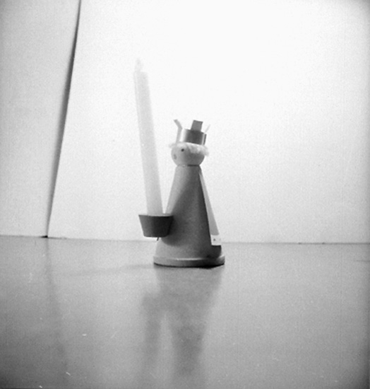 Ljusstake med ljus.