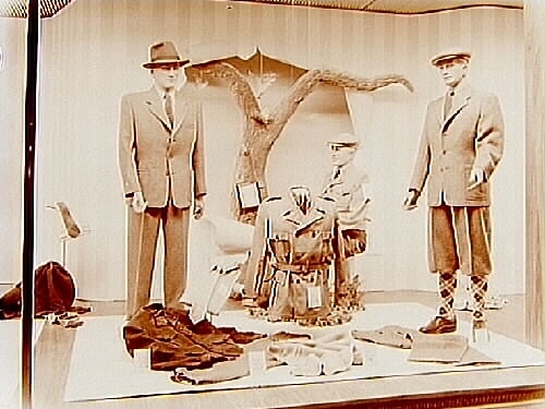 Turmans herrkläder bl.a kostymer. Skyltfönster.