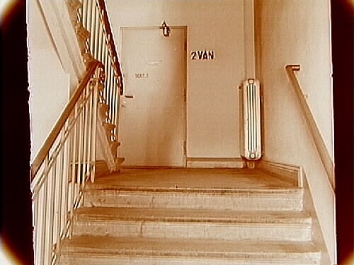 Ivarssons skofabrik, trappa till andra våningen, en dörr.