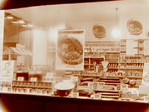 Titel: Konsum, affärsinteriör, charkvaror, konserver.