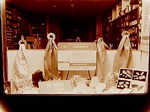 Blombergs Färghandel, skyltfönster, sobra plast.