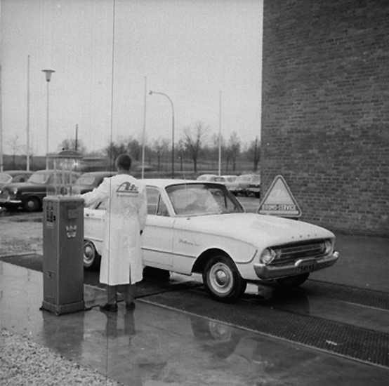 Ate Lockheed broms-service, bilverkstad, exteriör, en man.