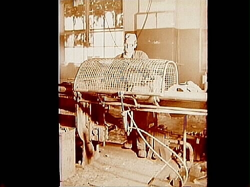 Statens Järnvägars Huvudverkstad (CV), verkstadsinteriör, svarv.