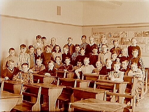 Engelbrektsskolan, klassrumsinteriör, 35 pojkar med lärare Simon Lund, klass 4J, sal 10.