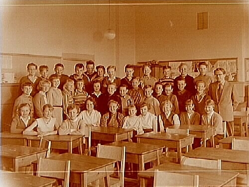 Almby Södra skola, klassrumsinteriör, klass 6Ll, sal 4. 36 skolbarn med lärare vik. Runne Andersson.