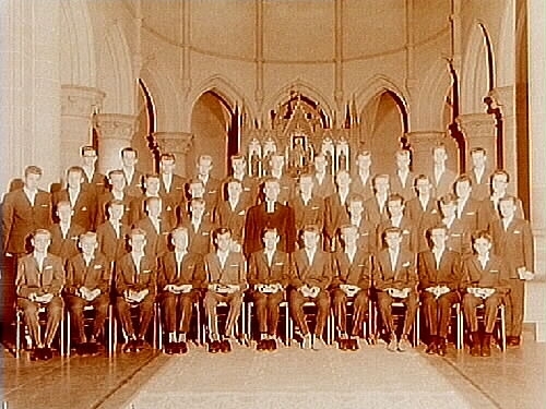 Konfirmander, 42 pojkar och komminister Inge Lagerstedt.