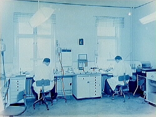 Tandtekniska laboratoriet, interiör, 2 personer.