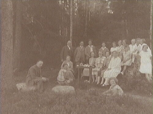 10/8 1926. Barn och vuxna vid ett kaffebord på en äng