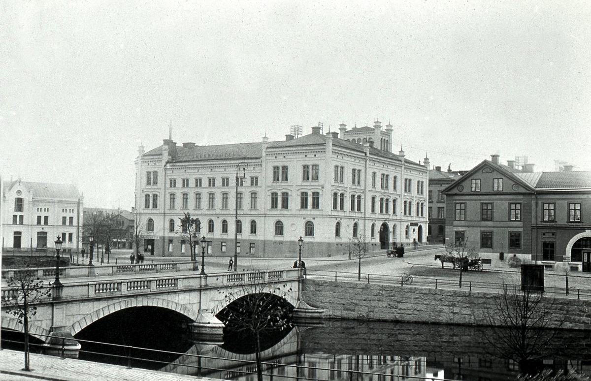 Stora Hotellet och Fenixhuset vid Drottninggatan. Till vänster skymtar Örebro kvarn. Del av Storbron.