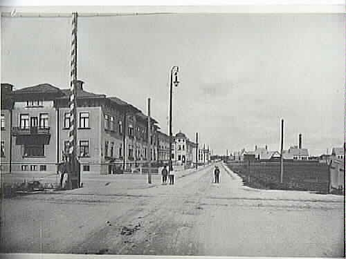 Skolgatan mot norr från gatukorsningen vid Grev Rosengatan. Till höger i bild ligger Örebro stads Epdemisjukhus , uppfört 1903