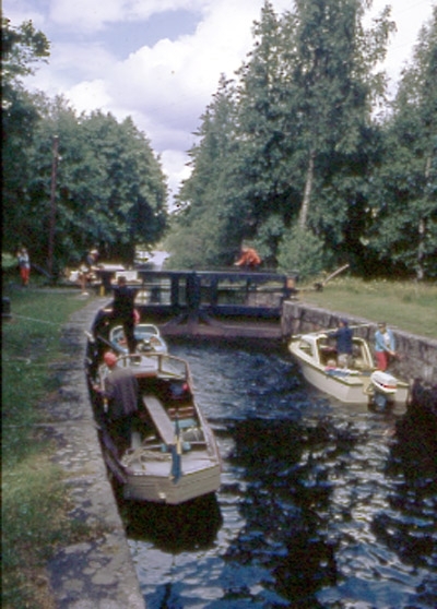 Titel: 1193-1196 Slussen, foto åt norr. 1197 Slussen åt nordväst. 1198 Slussen, södra slussportarna o slussbron mot söder. 1968-07.