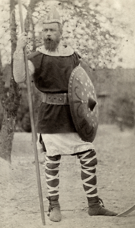 En man i krigardräkt.