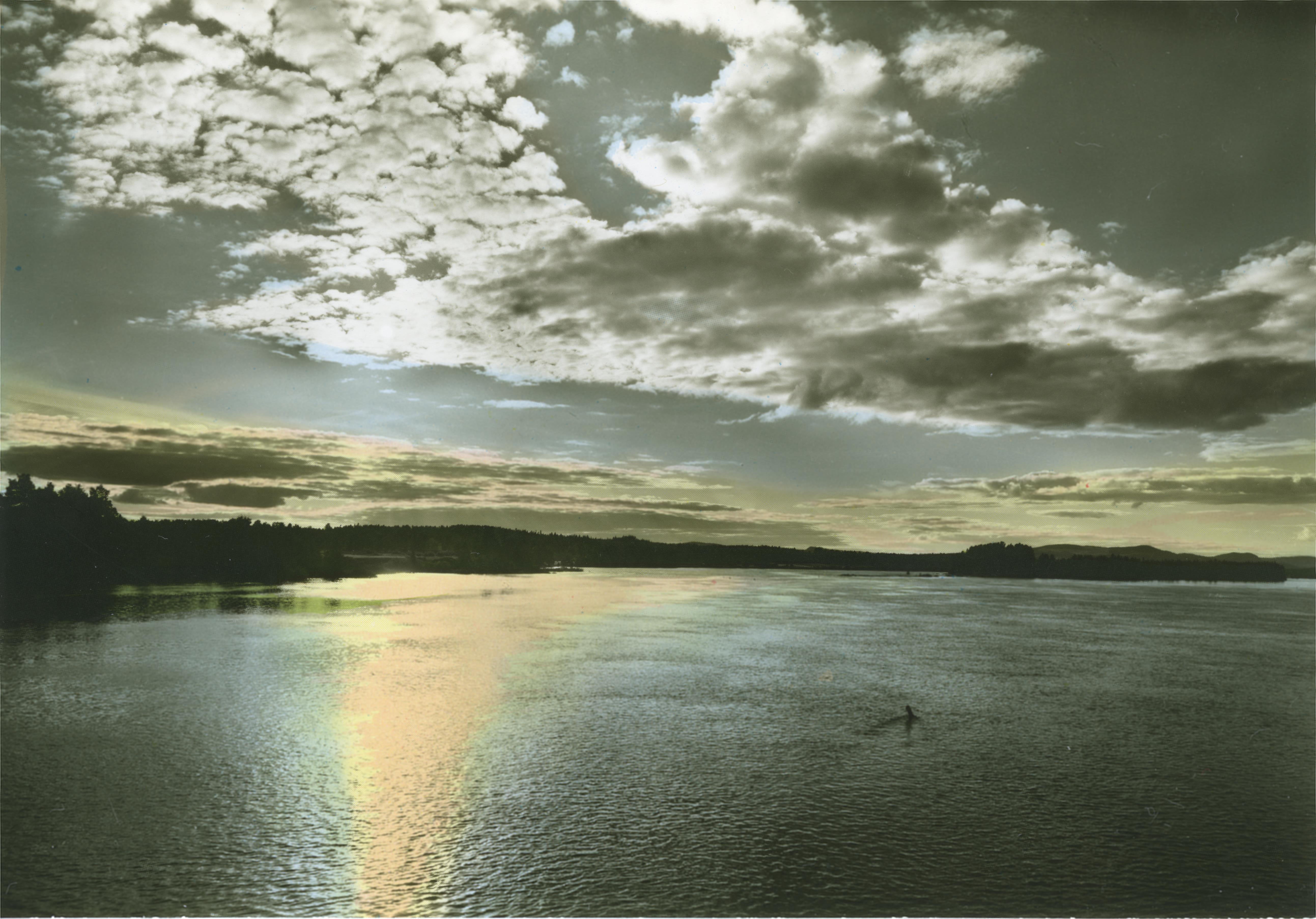 Afton vid Ångermanälven. Handkolorerad variant av ac01227.