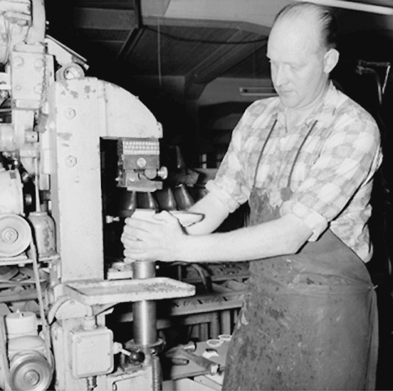 Oscaria Skofabrik, interiör, skotillverkning, en man.