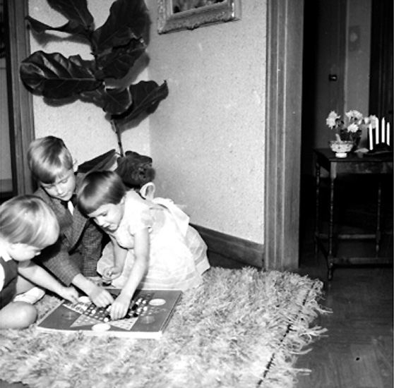 Rumsinteriör, tre barn.