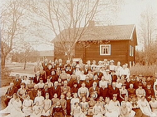 Tvåvånings bostadshus i liggtimmer, ekonomibyggnad.