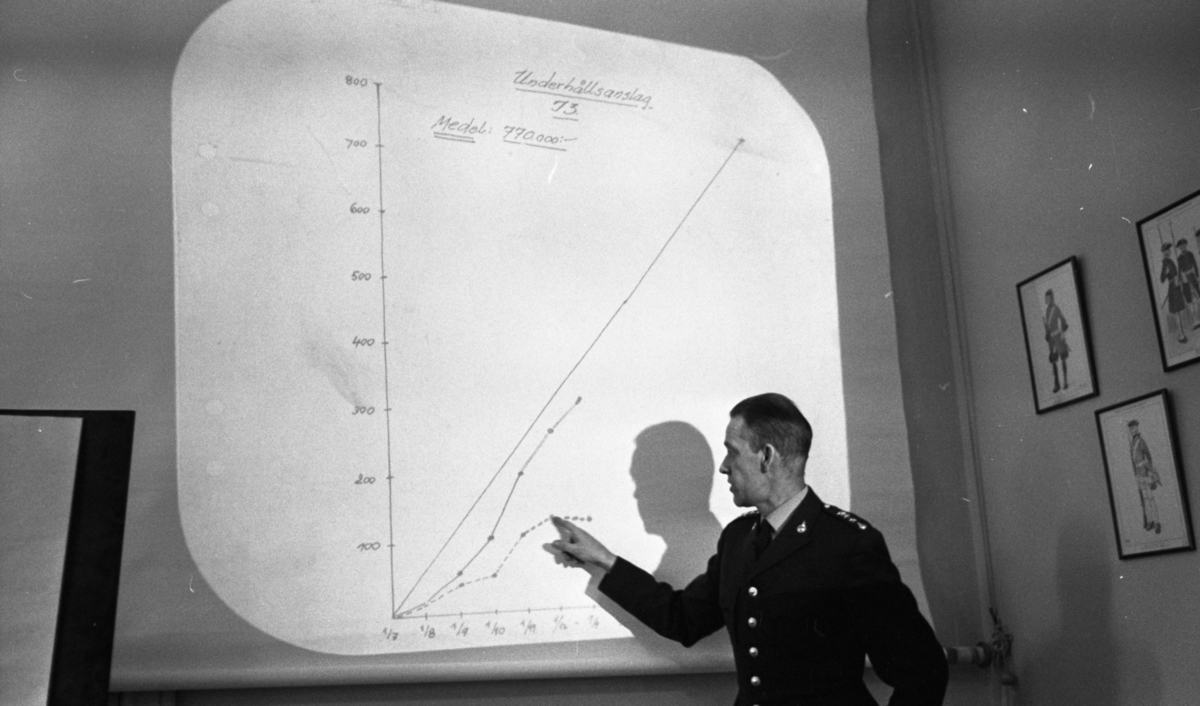 Överste Ebbe Gyllenstierna informerar media om nya riktlinjer för regementet. Ledarstaben skall göra regementet mer kostnadsmedvetna.