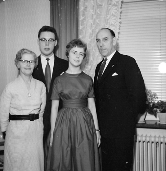Rumsinteriör, familjegrupp fyra personer.