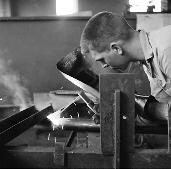 Gustafsson & Görtz, verkstadsinteriör, svetsning, en man.